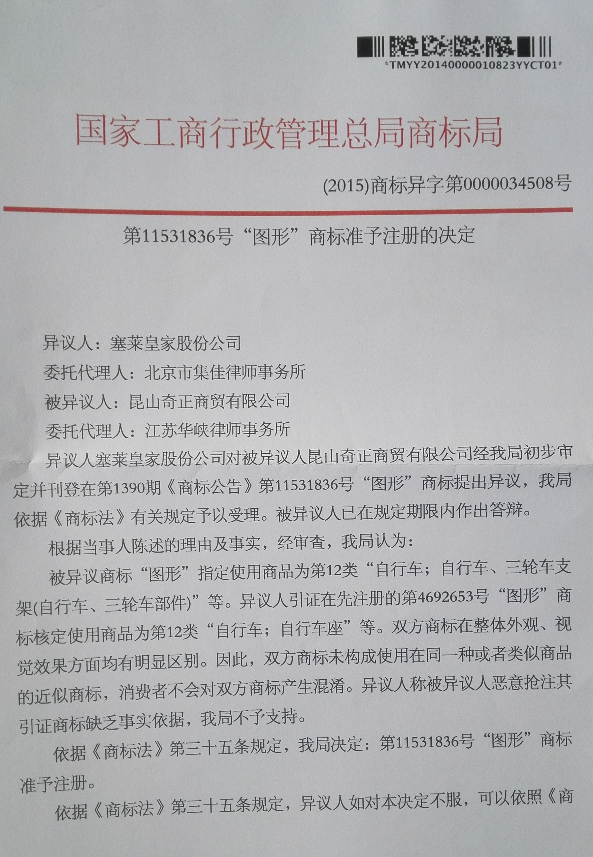 > 重要资讯 > 异议理由不成立,本所代理的商标核准注册